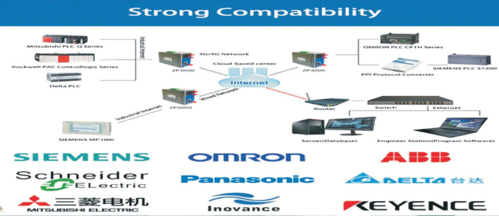 - Large PLC support – Ethernet – compliant with leading PLC manufacturers Rockwell Automation, Fuji, Schneider Electric, Omron, Mitsubishi, VIPA …)
