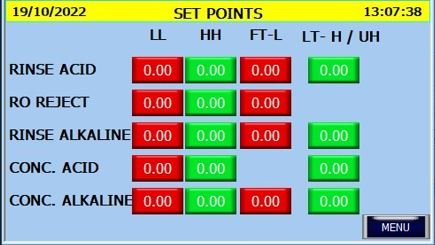 • Applicable Lower Low,Higher High Level alarms, Flow transmitter alarm if flow isn’t in given range to prevent pump dry run